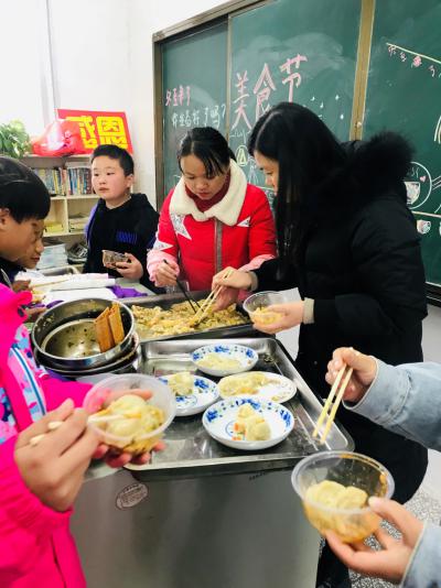 下午4时许,饺子在食堂煮熟后,老师、学生、家长组成的评委进行品尝饺子,同时评选出最佳风味饺子班级。
