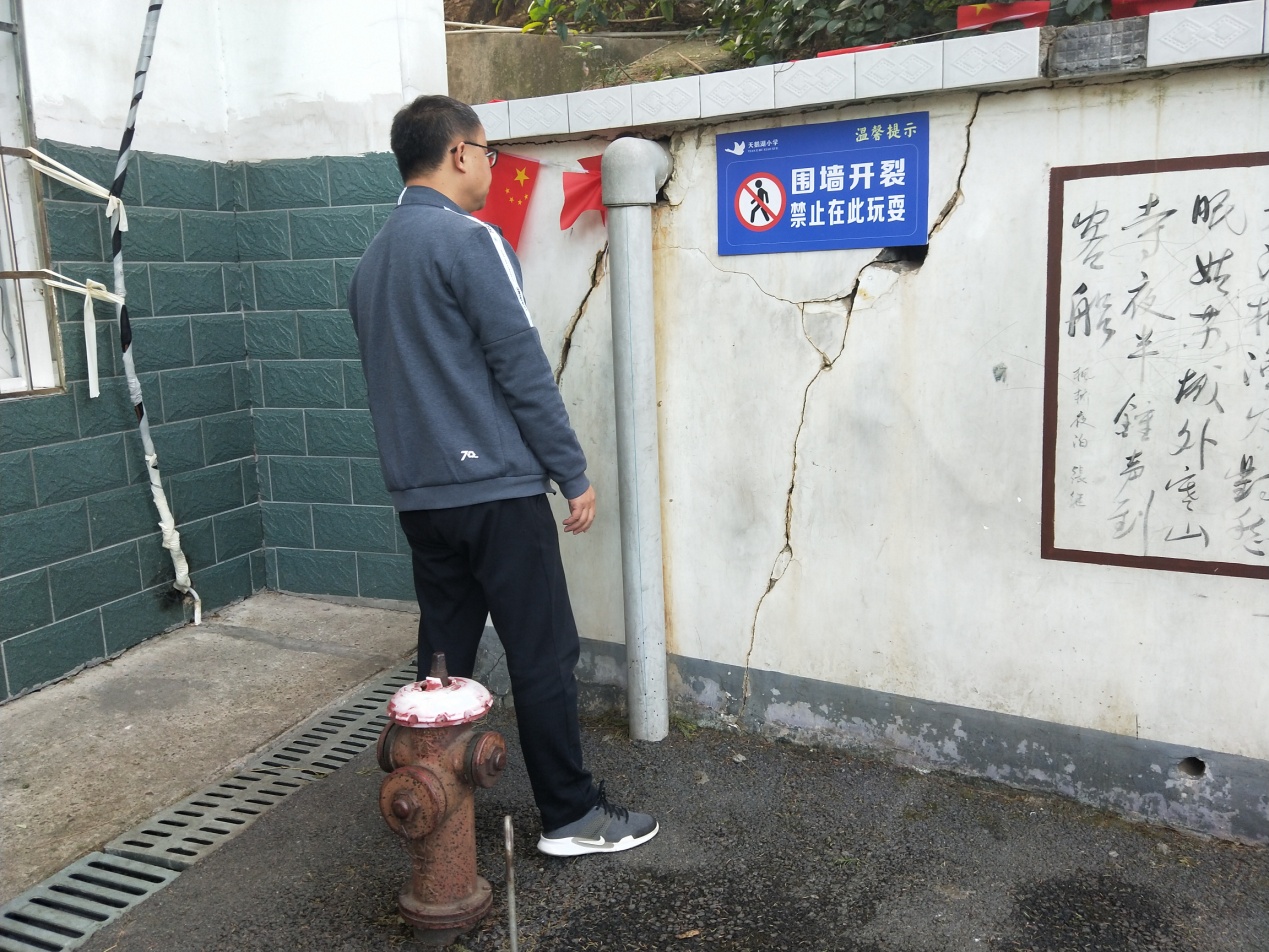 副校长刘义主要负责消防及校舍安全。刘义认真细致地巡查学校的各个角落,尤其关注校舍建筑及消防设施。通过认真排查,发现学校消防设施齐备,没有损坏,没有过期,都能正常使用,学校消防安全有保障。开学时发现的学校围墙墙体开裂处,没有变化,不影响安全。