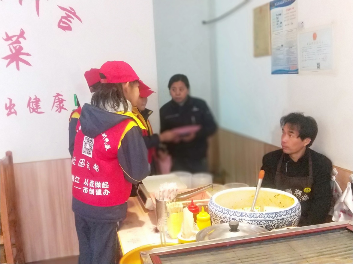 劝导倡议组的同学们,彬彬有礼又不是热情的向行人和商户们宣传1.管好手、不乱扔;2.弯下腰、一起捡;3.筑同心、共实践。倡议民众主动参与"文明我践行、垃圾不落地"主题实践活动,从自身做起,从身边小事做起,主动捡拾身边的零星垃圾,志愿参与路面清扫等志愿服务,以自己的模范行为带动身边的人,共同营造洁净有序的城市环境。