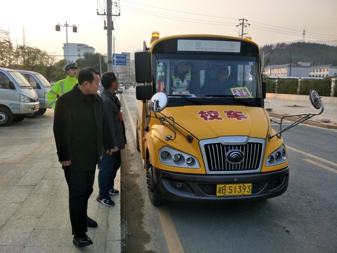 为进一步加强校车安全监管,有效预防和减少道路交通事故,保障学生上下学期间的道路交通安全。1月9日,教育局分管领导带领校车办人员联合交警大队开展校车交通顽瘴痼疾整治行动。