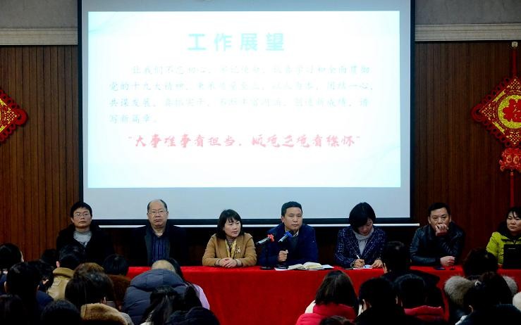 为表彰先进、树立榜样,2020年1月12日上午,株洲市第十九中学在东校区报告厅组织召开2019年度期末工作总结暨教职工表彰大会,会议由邱莉书记主持,全校260多位教职工参会。