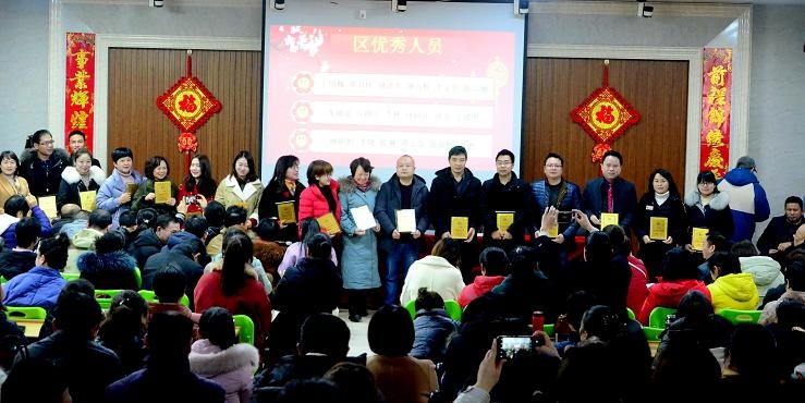 随后进行教职工年度表彰大会。伴随着主持的解说和优美的音乐,颁奖典礼隆重召开,共有100多位老师获得各种奖励,学校万德胜、詹艳平、朱暾颖、王友良、程辉红等副校长,分别为获得优秀班主任奖、学校先进个人奖、区嘉奖、区优秀教师奖进行颁奖,过斌校长、邱莉书记分别为“区立功”称号的教师和“从教三十年红烛奖”老师颁奖。