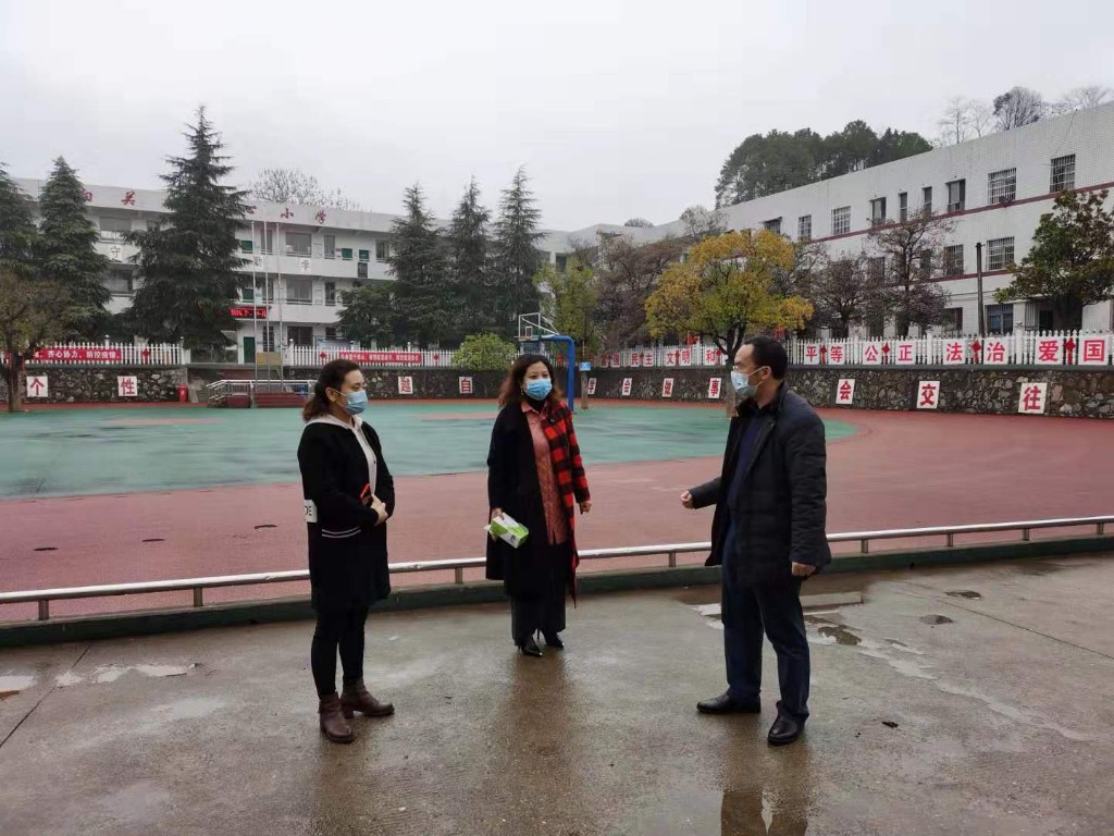 2月2日上午,芦淞区教育局朱金辉局长一行到白关中心小学检查疫情防控工作。此次检查,重点是对学校行政和门卫安保的值班安排、进出车辆及人员管控等情况进行现场落实。校长周英斌全程陪同并汇报学校防疫工作布置。
