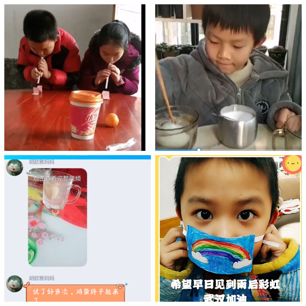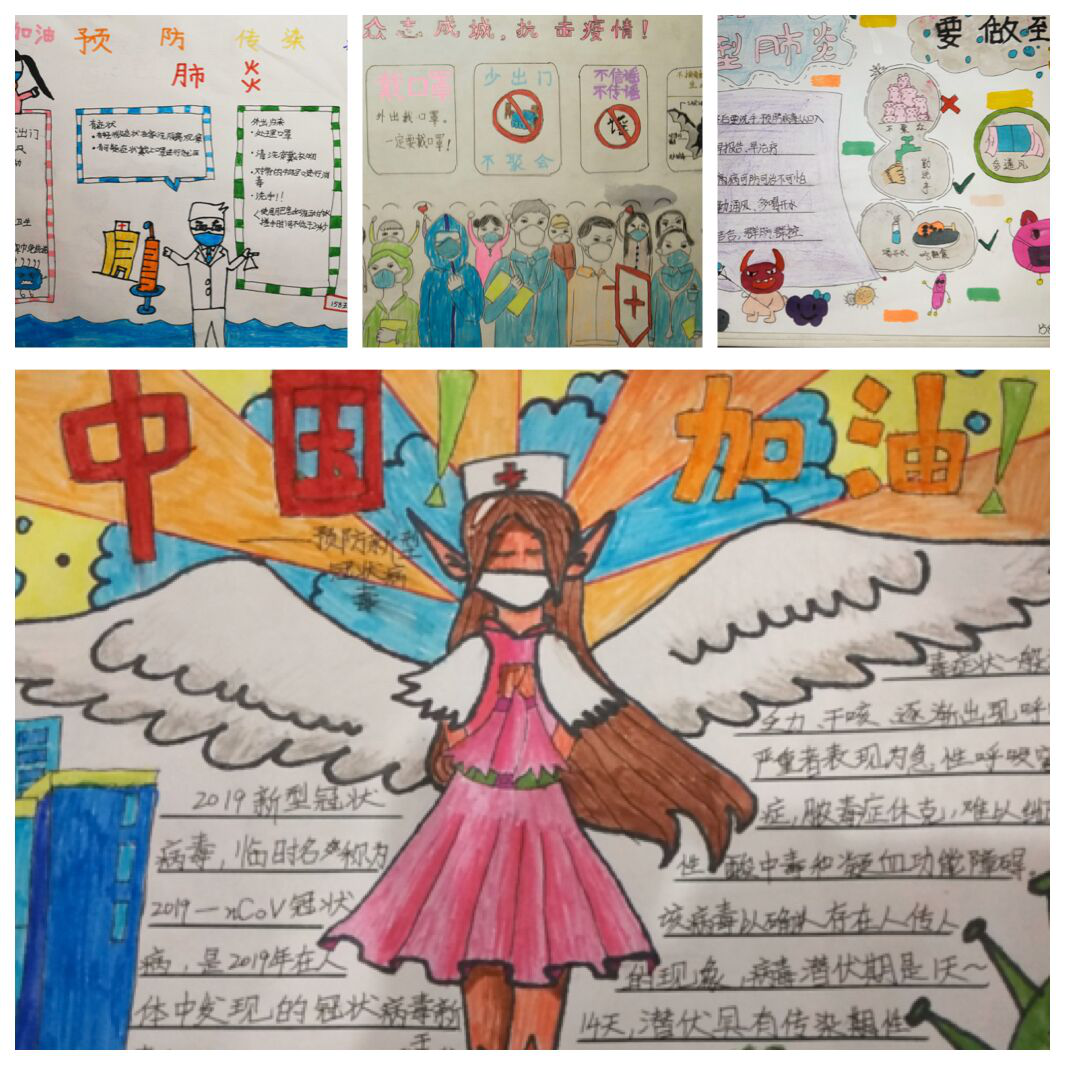 红旗路小学的孩子们以图画、文字和视频为武汉同胞们呐喊助威:虽然山川异域,但我们头顶的是同一片蓝天,脚踩的是同一片土地。风月同天,心手相连!