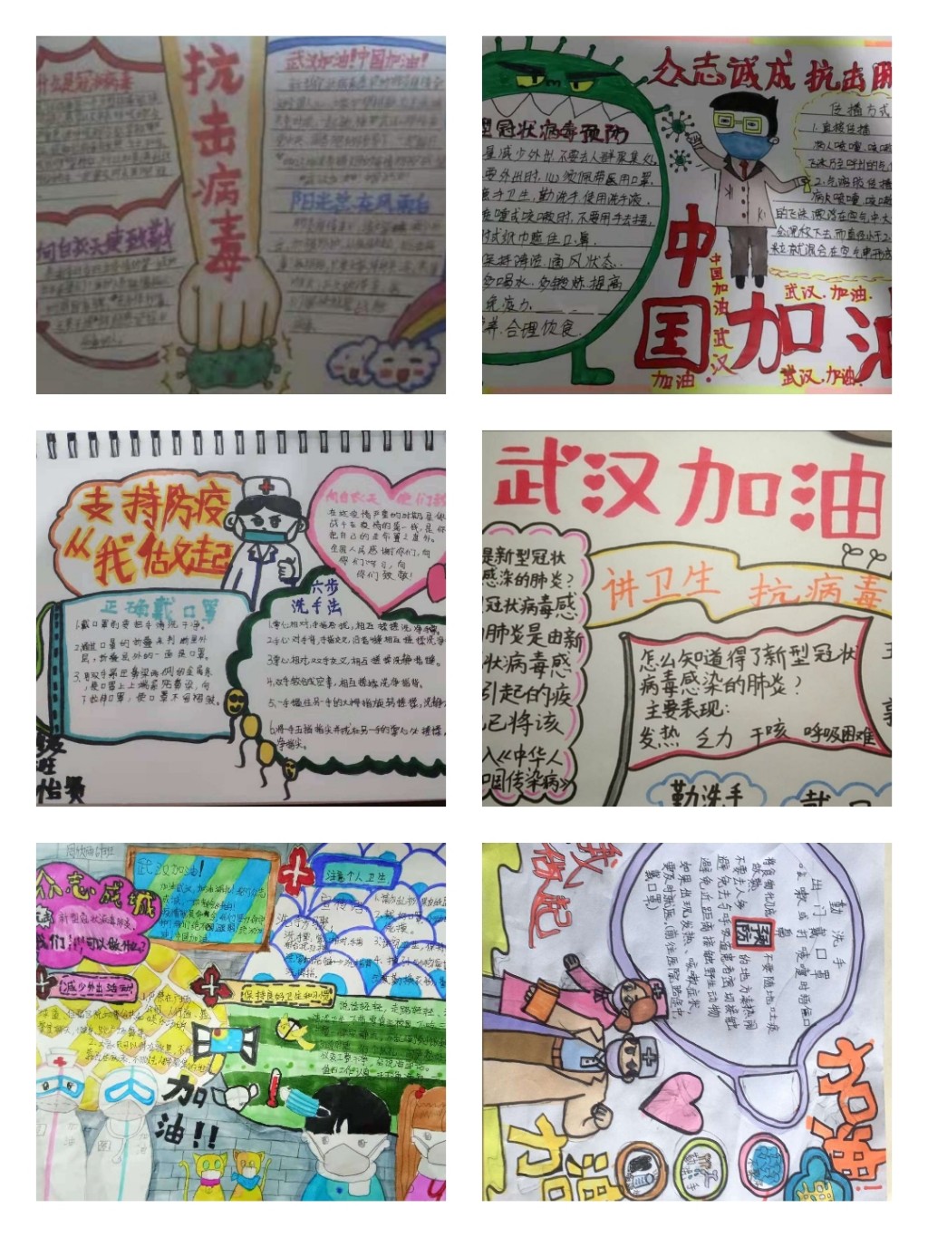 校园内,有校领导的以身作则,门卫安保的尽职尽责;校园外,有班主任通过班级群传达防控知识,掌握学生动态。在这个非常时期,同学们在家自主学习、娱乐健身统筹兼顾,如有同学用手抄报、绘画等形式积极宣传疫情防控注意事项及疫情救助感人事迹……