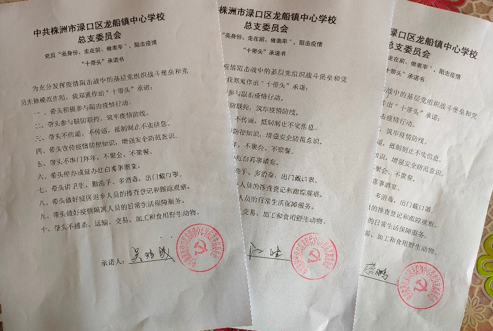 ――渌口区龙船镇中心学校防疫工作党员在行动!
