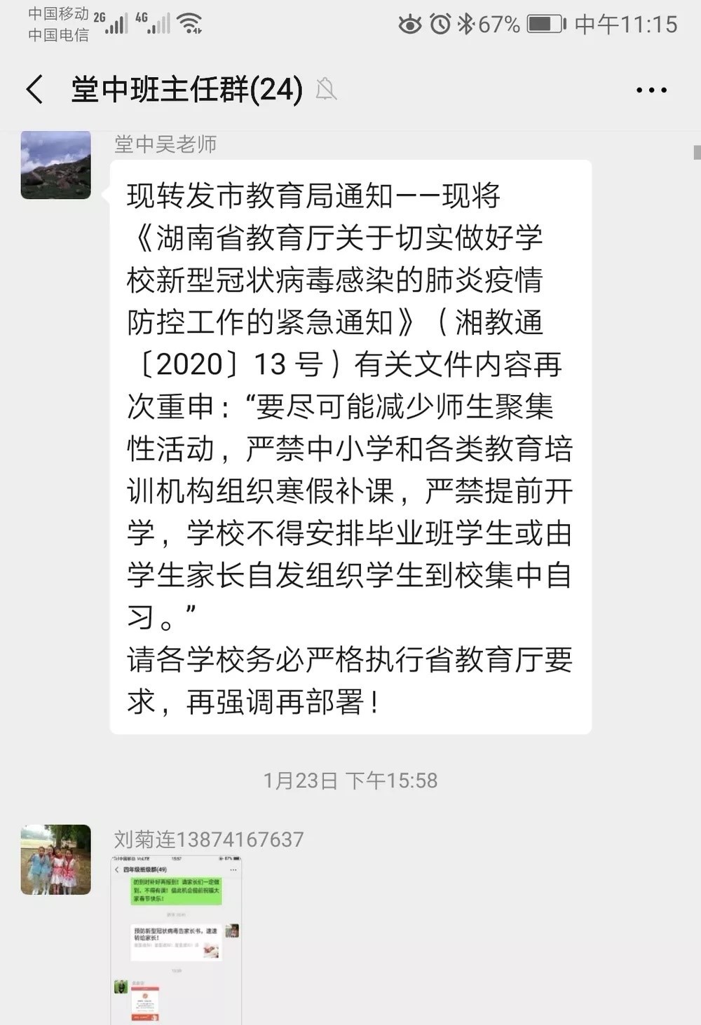 2月2日,校长吴炼成同志再次组织中心学校班子成员召开专题会议,要求结合渌口区最新管控要求,制定校园管控方案,学校相关部门迅速行动,全面展开师生信息摸排、健康监测、疫情日报告和零报告、宣传引导等防控工作。