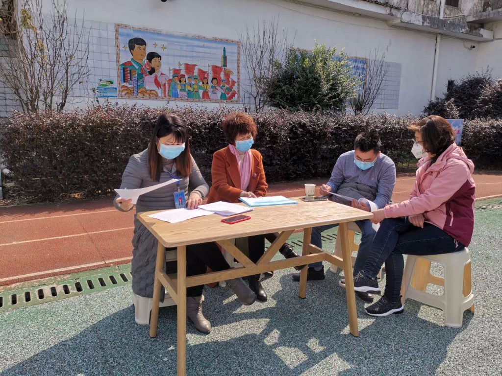 接着督查组认真听取了校长邓英姿对开学前防疫工作情况的汇报。通过实地查看,听取汇报等形式,督查组一行对学校的防疫工作给予了充分肯定:一是学校的高度重视。学校成立了以邓英姿校长为组长的疫情防控领导小组,制定了疫情防控工作的方案和应急预案。二是措施扎实有效。学校建立了教职工和学生的电子健康台账,每日根据反馈数据进行统计,摸清师生了底数;充分利用微信公众号、班级群等平台及时地对学生、家长进行疫情防控指导,并与与街道、村委联合,悬挂横幅、张贴《疫情防控措施告知书》,大力宣传防控知识;制定了符合校情的停课不停学方案,并自制微课,丰富学生线上学习素材,同时学校还通过希沃平台为全体老师进行了网课教学、给老师布置“假期作业”。三是过程资料、台账完善。