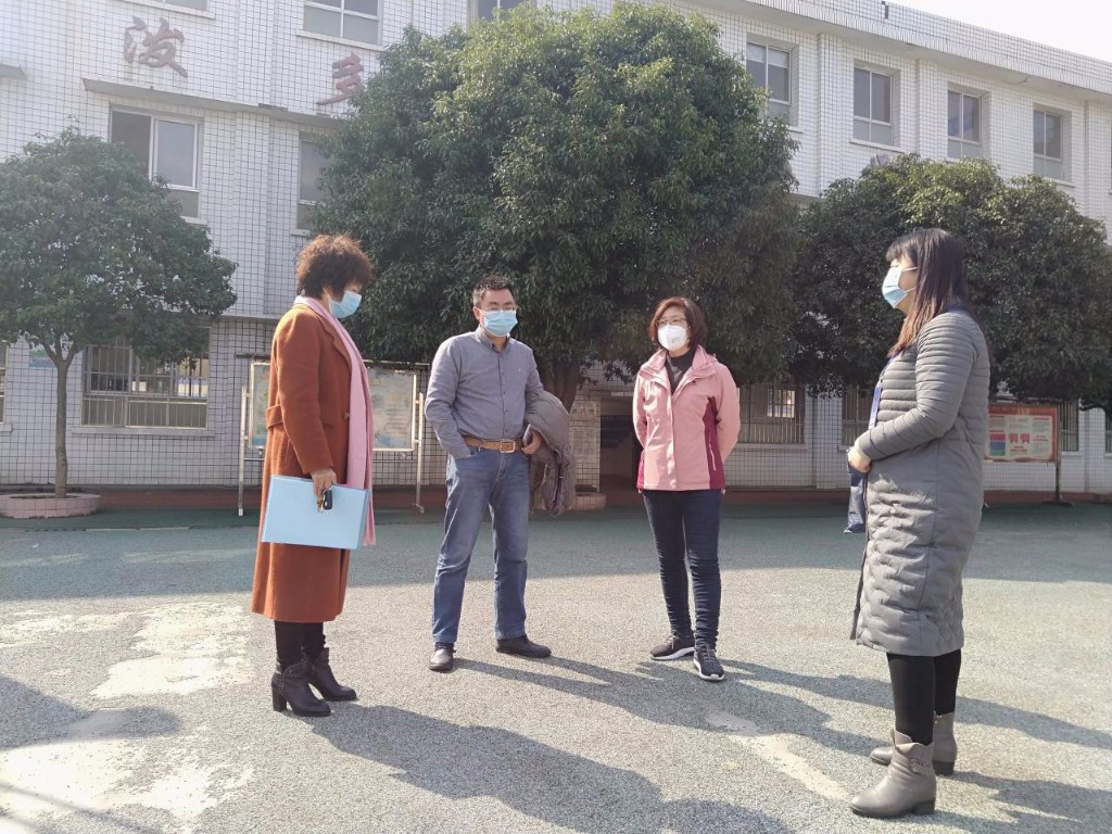首先,督查组在校长邓英姿的陪同下对学校的传达室、隔离室、防控物资储备、校园环境等进行了实地查看。