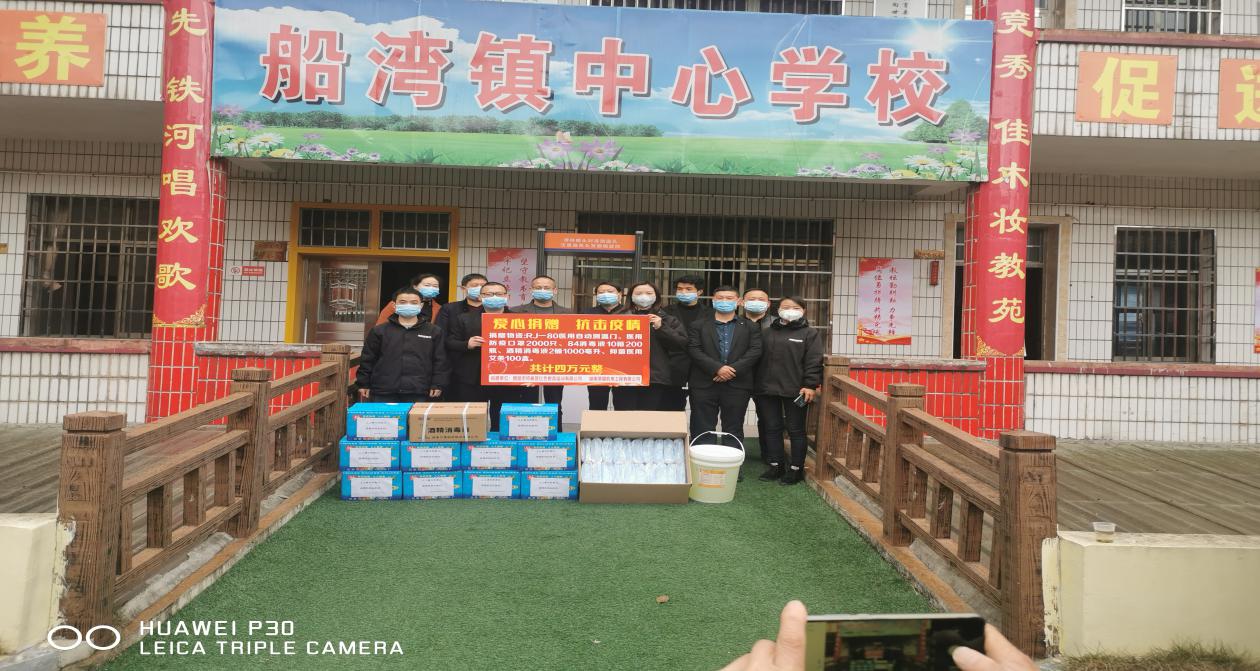 湖南荣疆机电工程有限公司和醴陵市特展营红色教育培训有限公司向船湾镇中心学校捐赠抗疫物资