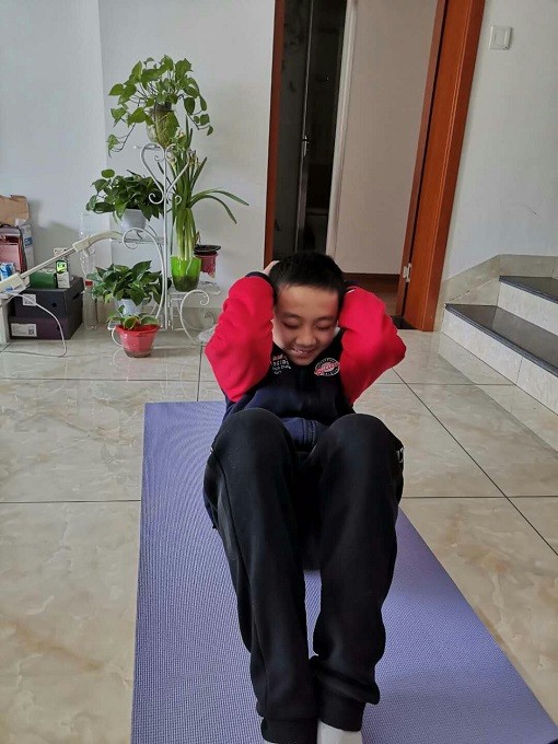“运动不负有心人,坚持时日必奏效”。我每天把客厅变成运动场,坚持完成体育老师布置的每日训练计划,一张一弛。选取体育老师给我提供的运动资源,在家根据实际情况采取一些适宜自己的体育运动项目。如摸高、俯卧撑、下蹲、仰卧起坐等力量练习,原地高抬腿跑、跳绳等耐力练习,立定跳远、坐位体前屈等柔韧练习;坚持做广播体操、眼保健操;练习打羽毛球、跳一跳兔子舞……。
