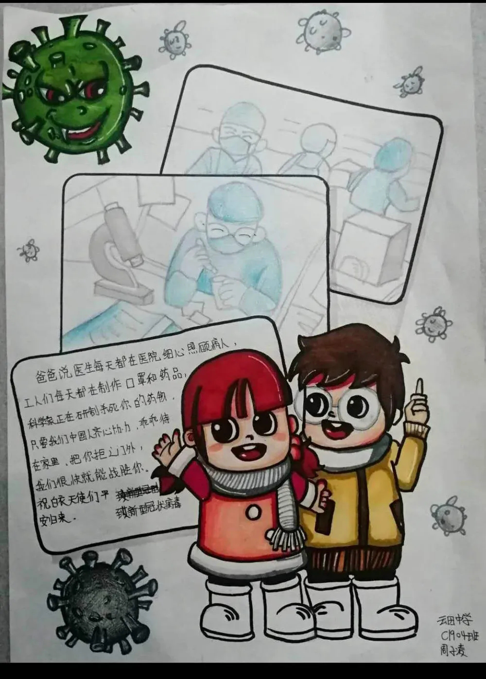 看到医生护士前赴后继逆行而上,夜以继日救死扶伤,看到全国人民众志成城、齐心抗疫,孩子们为之感动,纷纷用画笔记录下他们眼中的世界,表达内心美好祝愿。