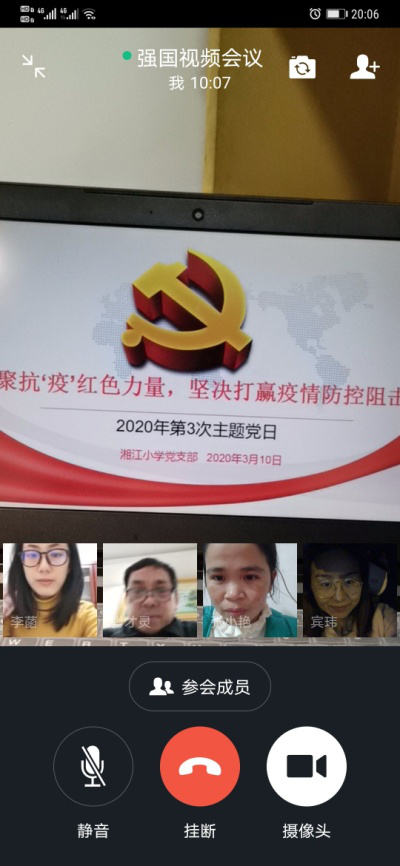 2020年3月11日晚8点整,湘江小学全体党员利用学习强国平台召开了以“凝聚抗‘疫’红色力量,坚决打赢疫情防控阻击战”为主题的3月主题党日会议。