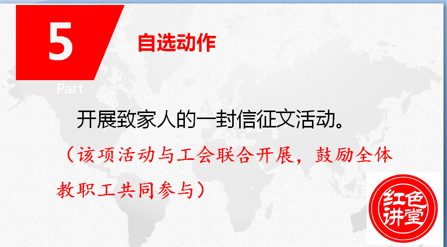 最后,书记说明本次的自选活动将与工会联合开展“一封家书,万缕情丝”活动,希望各位党员做好表率,积极带领其他教职工一起参与。