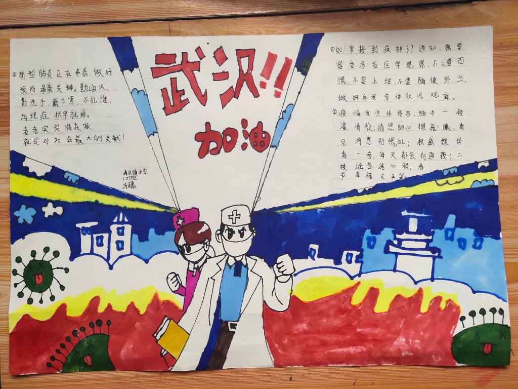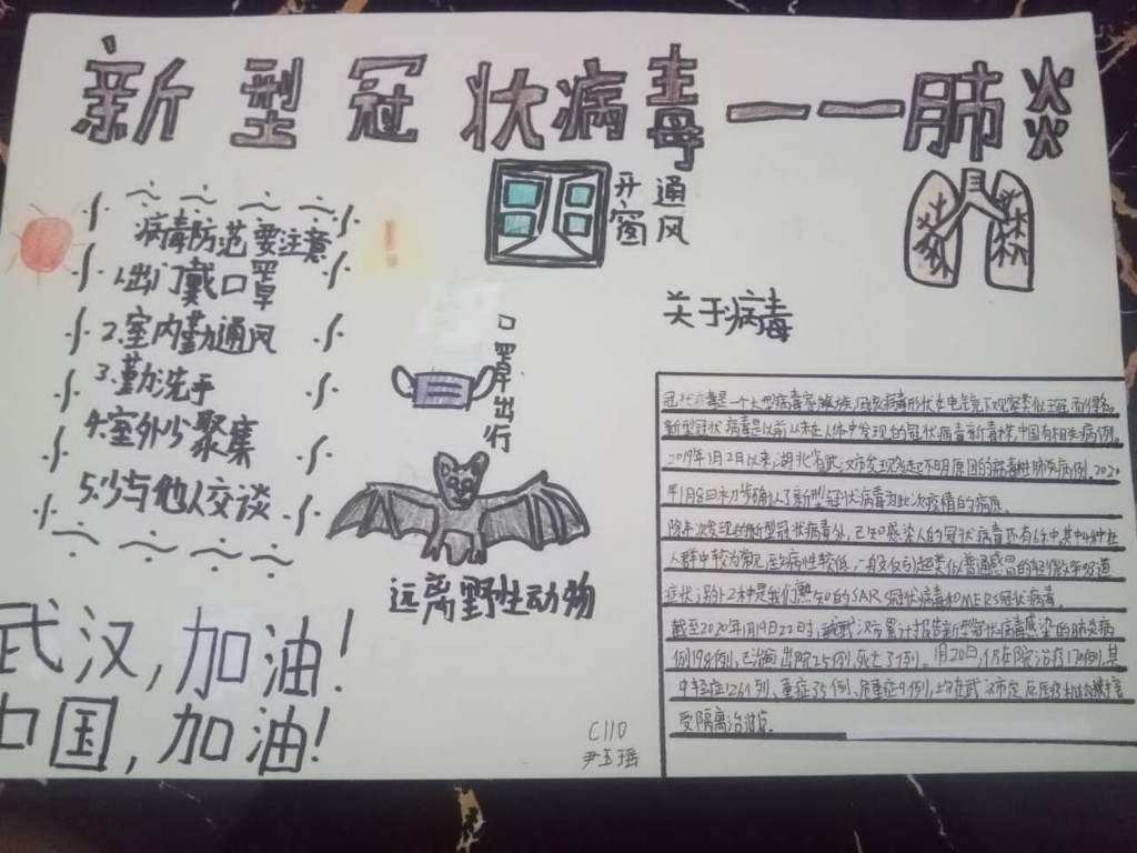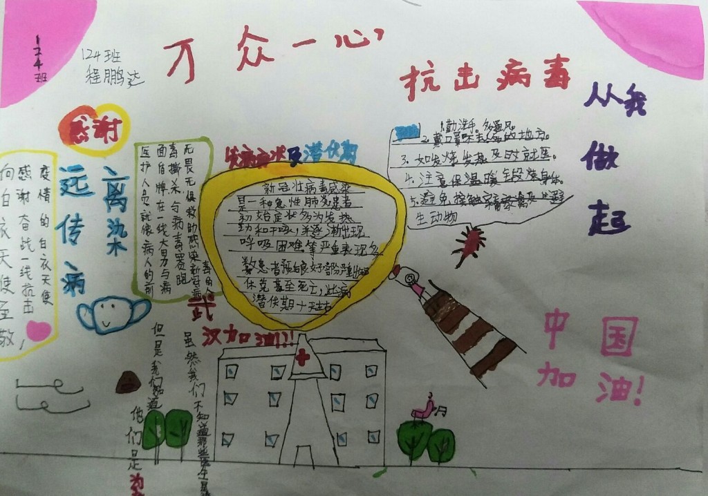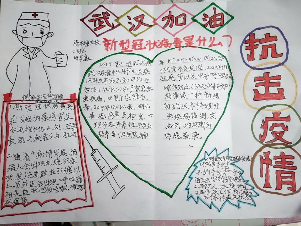 2.线下实践。刘丽明副校长下发了《清水塘学校新型冠状病毒感染的肺炎线下主题实践活动》的内容,引导学生自主参与防控新型冠状病毒感染的肺炎主题实践;班主任认真指导学生进行亲子学习、制作手抄报、绘简笔画、录制视频、书写作文、制作美篇等实践学习;引导家长完成“疫情防控承诺书”,从线上完成疫情防控承诺书、宣读疫情防控承诺书、晒晒疫情防控承诺书等方面,全面提高学生的安全素养,防控病毒的能力。