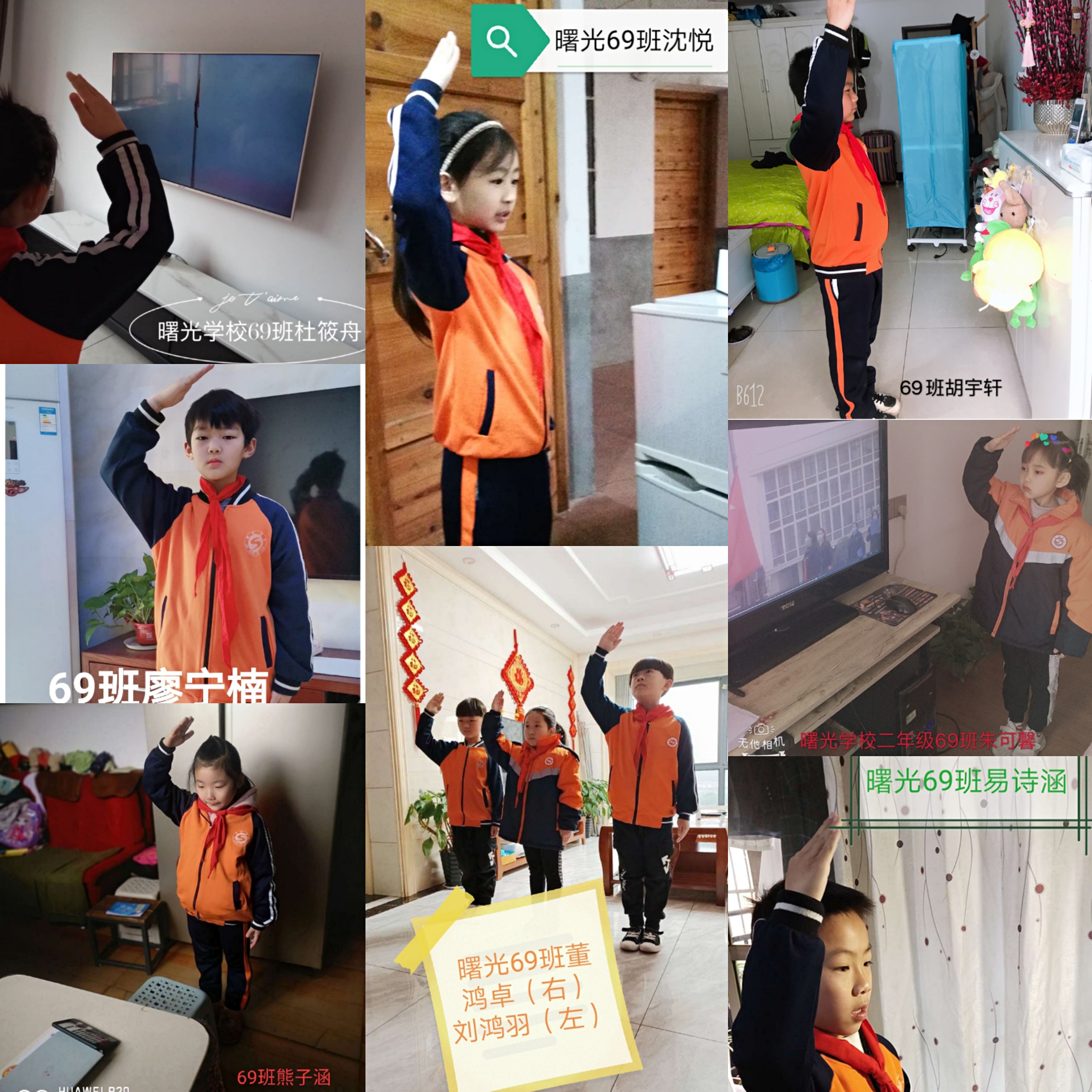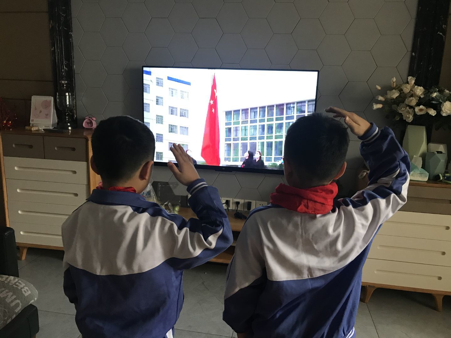 仰望鲜艳的五星红旗徐徐升起,三所学校的全体师生们共同唱响了《国歌》,激动的心情溢于言表,心中的热血在沸腾,心潮在澎湃……我们似乎看到了在疫情抗战中许许多多感人的画面……感受到了旗帜的力量。