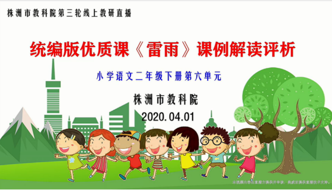 一场疫情,让开学时间不断后延,受新冠肺炎疫情的影响,中小学生经历了一个漫长的"假期"。为保障中小学生学习不受影响,教育部发起了"停课不停学"号召,学校、家庭与社会积极响应,运用现代信息技术手段大力推进"在线"学习。4月1日,株洲市教科院开展抗疫期间"超越时空 传递智慧"第三轮教研直播活动,此次直播活动,以课例研讨为主,包括课例直播和专家点评。湘江小学语文组备课组在区教研室的统一安排下,学校教研部门组织了全体老师参与了此次的线上培训。
