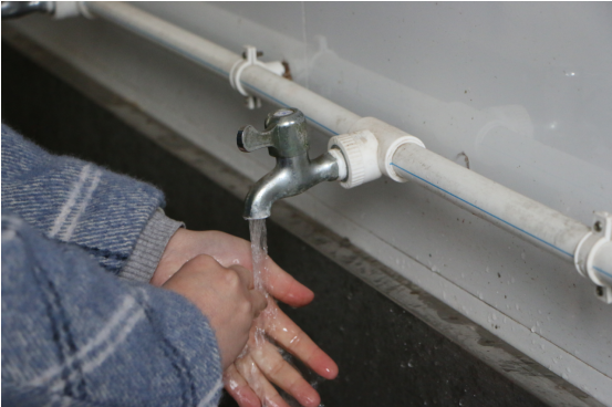 “请同学们排队进行入寝体温检测”在进入宿舍处,学校设置了体温检测点,对进入宿舍的学生开展体温检测和健康监测,限制非本楼栋人员进入。学生就寝时一人一床,同一寝室学生就寝保持头朝同一方向。每天晚上入寝时,老师再一次对学生进行体温晚检。