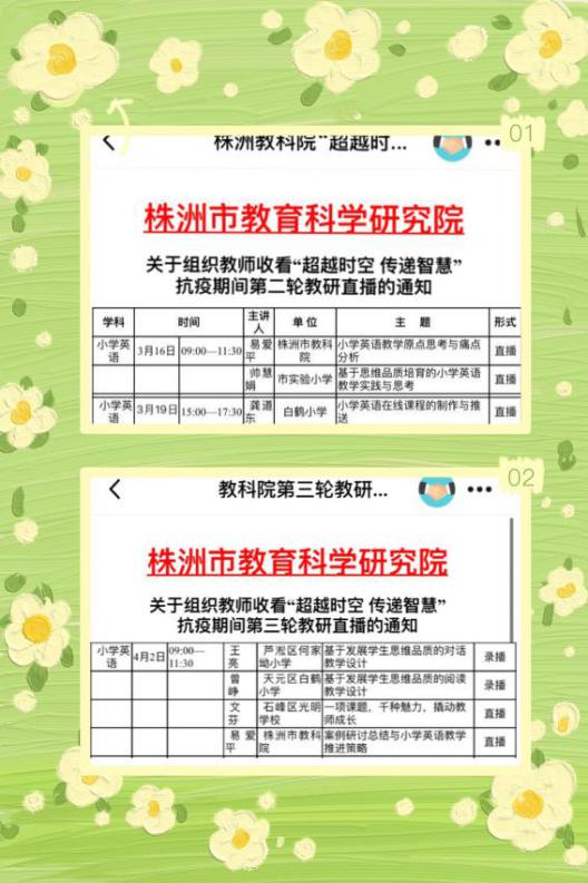 2020庚子鼠年,注定是不同寻常的一年。由于一场突如其来的疫情,我们延迟了开学,延迟了回到校园的脚步。但是我们并没有因为疫情而懈怠了英语教学的研讨和学习。为贯彻落实党中央、国务院及省市有关疫情防控工作的部署和要求,本着"停课不停学,离校不离研"的原则,在株洲市教科院组织下,我市开展了三轮教研直播活动。