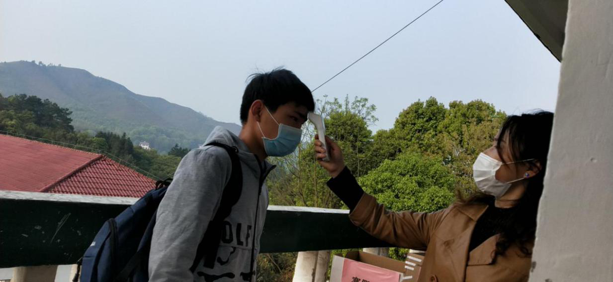 早上7点半全校老师都已来到学校,按照学校安排各就各位,严阵以待。8点整133班学生戴着口罩陆续来到学校,大家按照上次老师演练的顺序:填写健康卡、测量体温、排队进校园、到校门口家长处拿生活用品,进入寝室、到班主任处报到、测体温进入教室,学习“开学第一课”有条不紊,迅速地完成了整个报到流程。9点我们又迎来了134班学生,10点135班学生准时到达,大概上午11点,所有初三学生都已全部报到,没有一个迟到,没有一个流失!