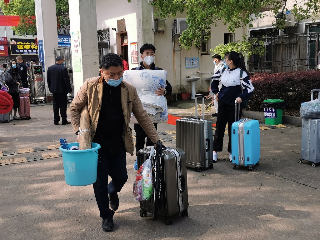 这是4月7日早上,我市高三初三年级复学的场景之一。根据省统一部署安排,按照分批次、错峰开学要求,我市高三、初三年级的学子们在家上完了最后一节网课,终于在今天结束了这个“超长假期”,正式开学复课啦!今天首批复学的学校有52所,返校复课学生共计14058人。