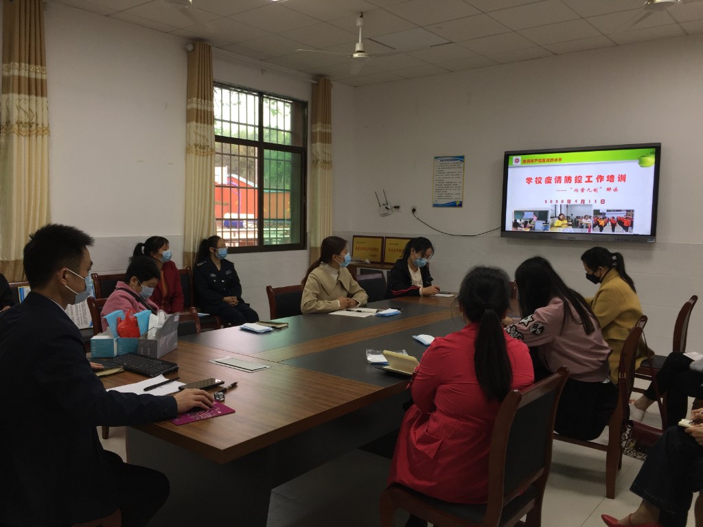 2020年4月14日上午9时,双牌小学在学校会议室进行了“学校疫情防控工作培训”,欧阳兰桂校长主持会议,全体教师、保安和工友参加培训。