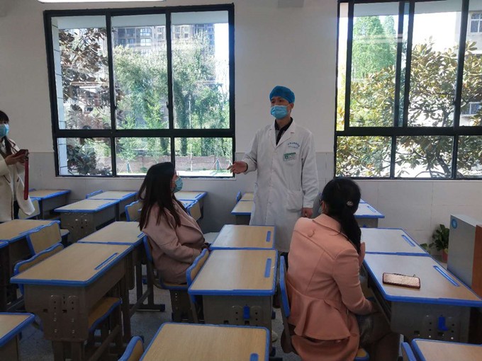 为切实提高全校师生防控应急能力,保障广大师生员工的身体健康和生命安全,维护正常的教育教学秩序,提升应急能力,在防疫培训后,政教处主任曹耿组织教职工进行了疫情防控演练。本次演练模拟复学后在校内出现学生发热、咳嗽等突发情况。