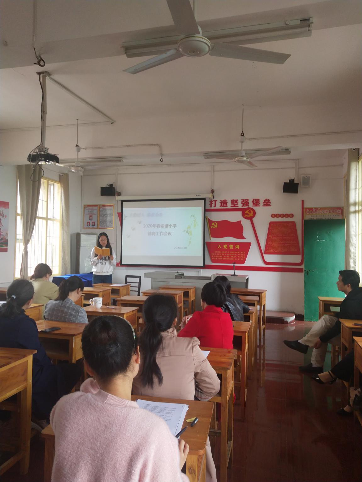 接着,湖塘小学全体德育工作者一起学习了《中小学德育工作指南》和《渌口镇中小学德育工作序列化实施方案(草)》,各位德育工作者明确了当前德育教育的具体要求和工作任务。少先队辅导员结合学校实际情况,明确了本期学校以"六礼三仪"为抓手,狠抓学生养成教育的工作目标。