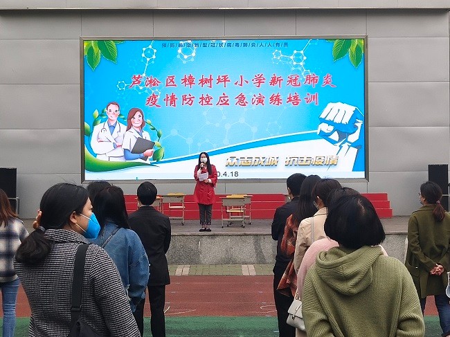 为切实做好2020年上学期学校的疫情防控工作,提升教师对疫情防控和突发事件应急处置能力。4月18日下午,樟树坪小学顺利开展了疫情防控应急演练活动,全校教师积极参与其中。