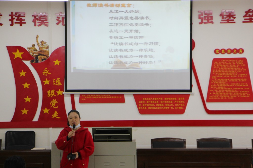 陈水清主任分享自己读书的经历,她指出读书是一件快乐而伟大的事情,可以在不知不觉中改变一个人。
