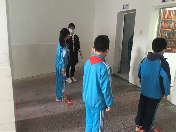 把好进校第一关,确保师生健康安全。确保学校师生健康安全是开学工作的重中之重,学生必须提供绿色健康码、签好“复学承诺书”、晨检体温正常方能进入学校。每天早上七点半,值日老师、学校行政、家长志愿者、教育局蹲点领导、片区民警和校园保安就在校门口等候学生的到来,组织学生排队、测量体温,提醒学生时刻注意保持“一米”距离。