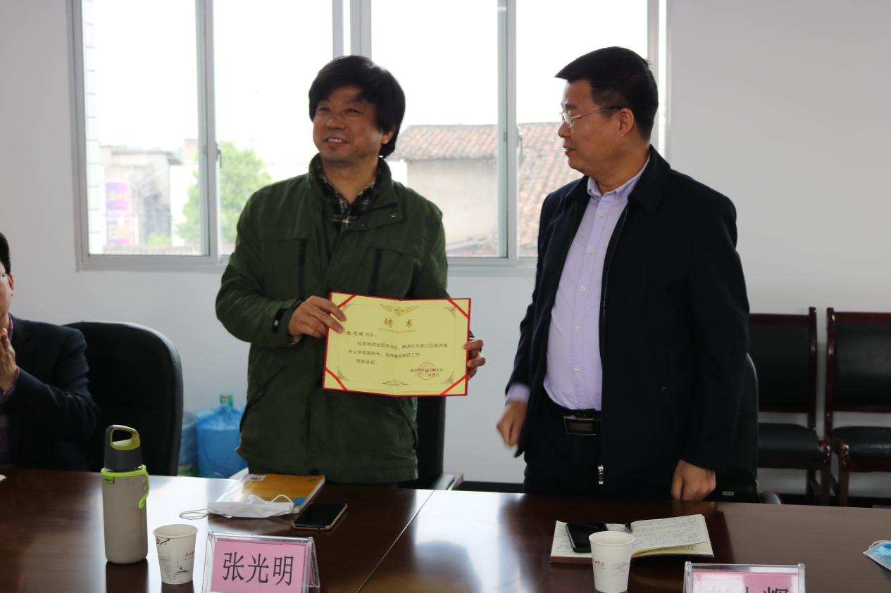 随后,市教科院书记曾立明发表讲话。他指出,乡村学校教研水平提升项目会一直做下去,这次张主任支教,希望师生能抓住学习的机会,做参与者,不做旁观者。希望在一段时间后,学校、教师、学生都能有所收获。区教育局副局长彭中辉也发表讲话并颁发聘书,感激市教科院对渌口区教育多年的关心,这次张主任驻校支教,对整个渌口区来说都是一个非常宝贵的学习机会。钦佩张光明主任对教育的热情和执着,主动进课堂,上一线,深受感动。渌口区将加倍珍惜这种机会,辐射到全区,继续推动渌口区教育的发展。