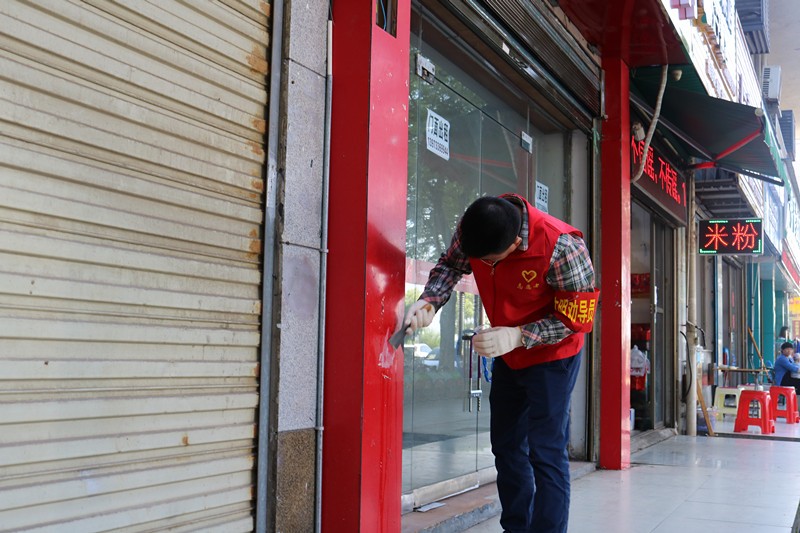 易国林穿上“红马甲”与志愿者们一起沿街向市民分发《渌口区文明城市提升倡议书》,号召广大市民自觉行动,做一个积极的参与者,争当文明的践行者。机关干部手拿扫帚、铁锹等工具,共同清扫社区人行道上的垃圾,清除小广告和牛皮癣。经过两个小时的奋战,整条街道变得更加干净、整洁。