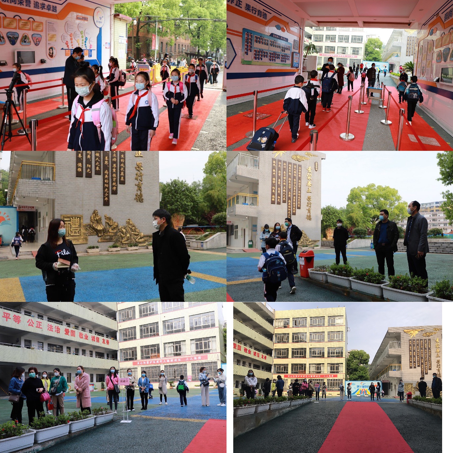 在石峰区教育局地正确领导下,为了保证全校学生能做到错时错锋入校,学校按照上级要求做好了具体安排与应急处置预案。4月24日,一二三年级同学们在家长的护送中来到了学校。有的同学迅速地来到入校通道排队、有的同学在阅读入校要求、有的同学在学习新冠肺炎防控宣传知识……