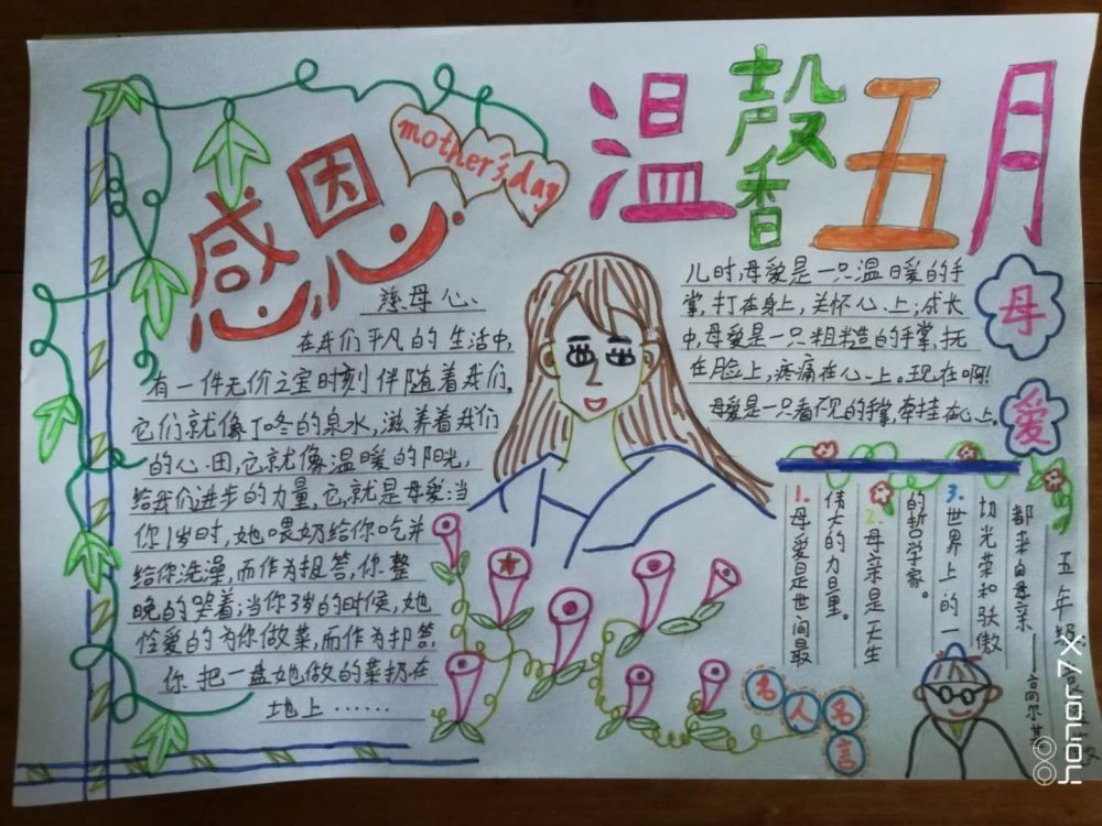 通过开展此次母亲节感恩活动,希望同学们从小懂得理解妈妈,学会关爱妈妈、学会感恩,借此机会努力表达自己对妈妈深深的爱和对妈妈真诚的祝福。最后,祝愿我们亲爱的妈妈们身体健康,一切开心顺利!