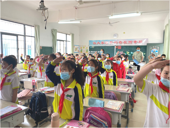 星级文明班级评比由班级文化布置、学生行为习惯、课堂常规及小组建设、演唱《国歌》《队歌》及敬队礼四大部分组成。此次评比中,四年级的精神风貌让老师们竖起大拇指;六年级的学生自主动手制作的文化墙报、理想树等,处处都彰显了孩子们的聪明和智慧;三年级张贴的部分手抄报比高年级的还要精美……