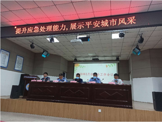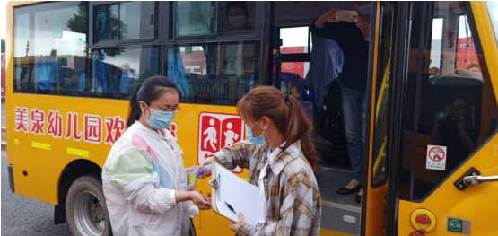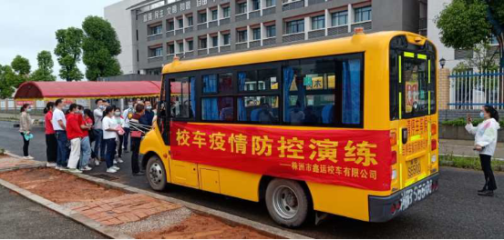 会后,鑫运校车公司组织校车司机和随车照管员开展了防疫培训和演练活动,全体参会人员观看了演练。