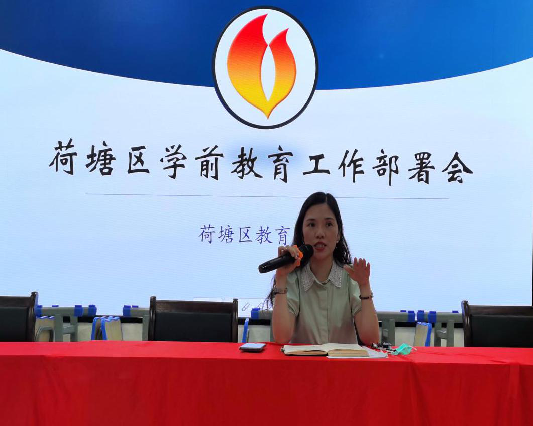 随后,召开“荷塘区学前教育工作部署会”, 社办股股长马萍菲对疫情防控、平台数据上报、小区配套园的建设治理、普惠性幼儿园的定级评估等工作做了详细的部署。她强调,一是要抓好教育教学工作,坚持游戏化教学,杜绝小学化行为。二是抓好师资队伍建设,规范办园行为。三是要抓好园所安全工作,做好自我检视。