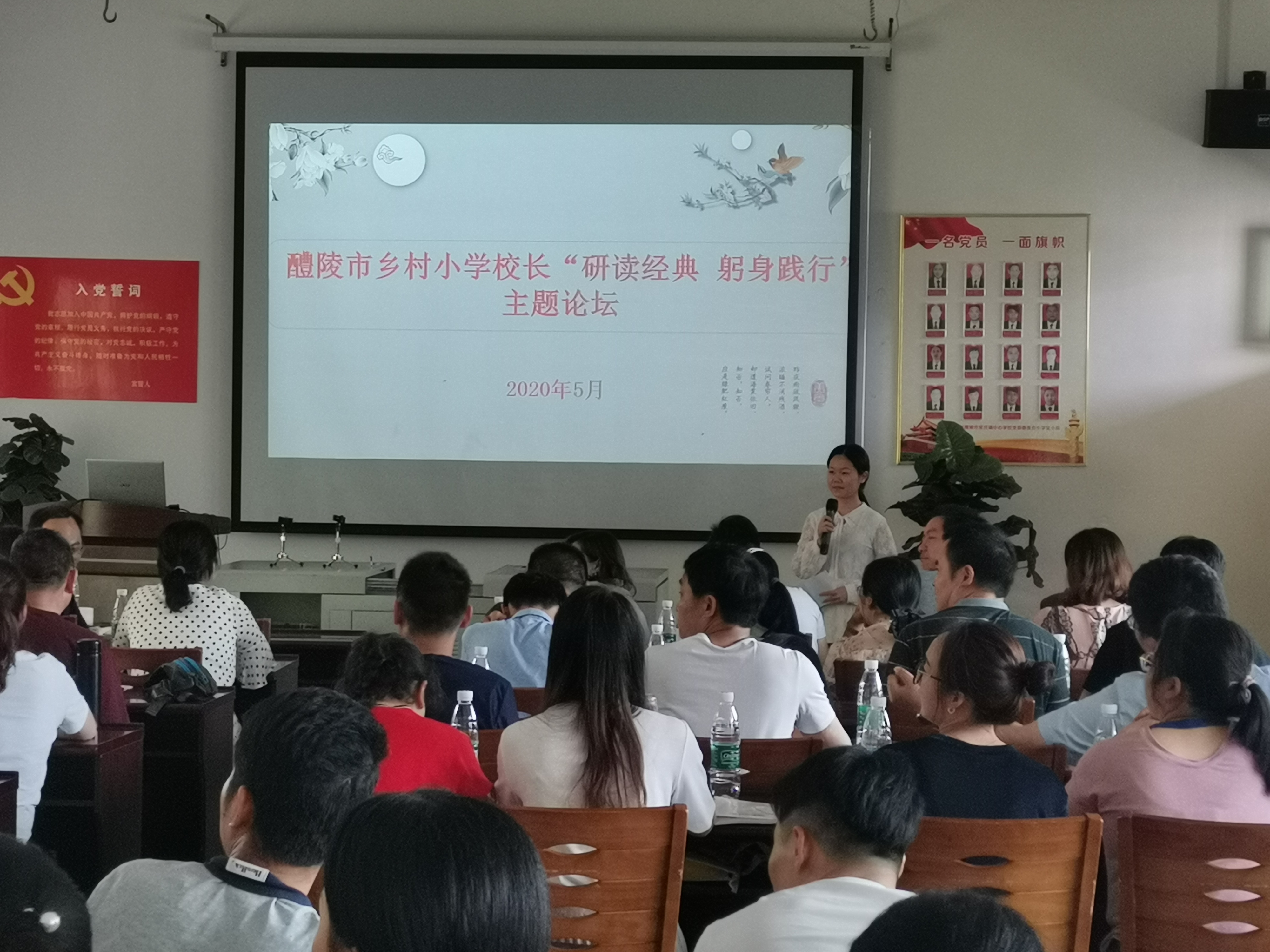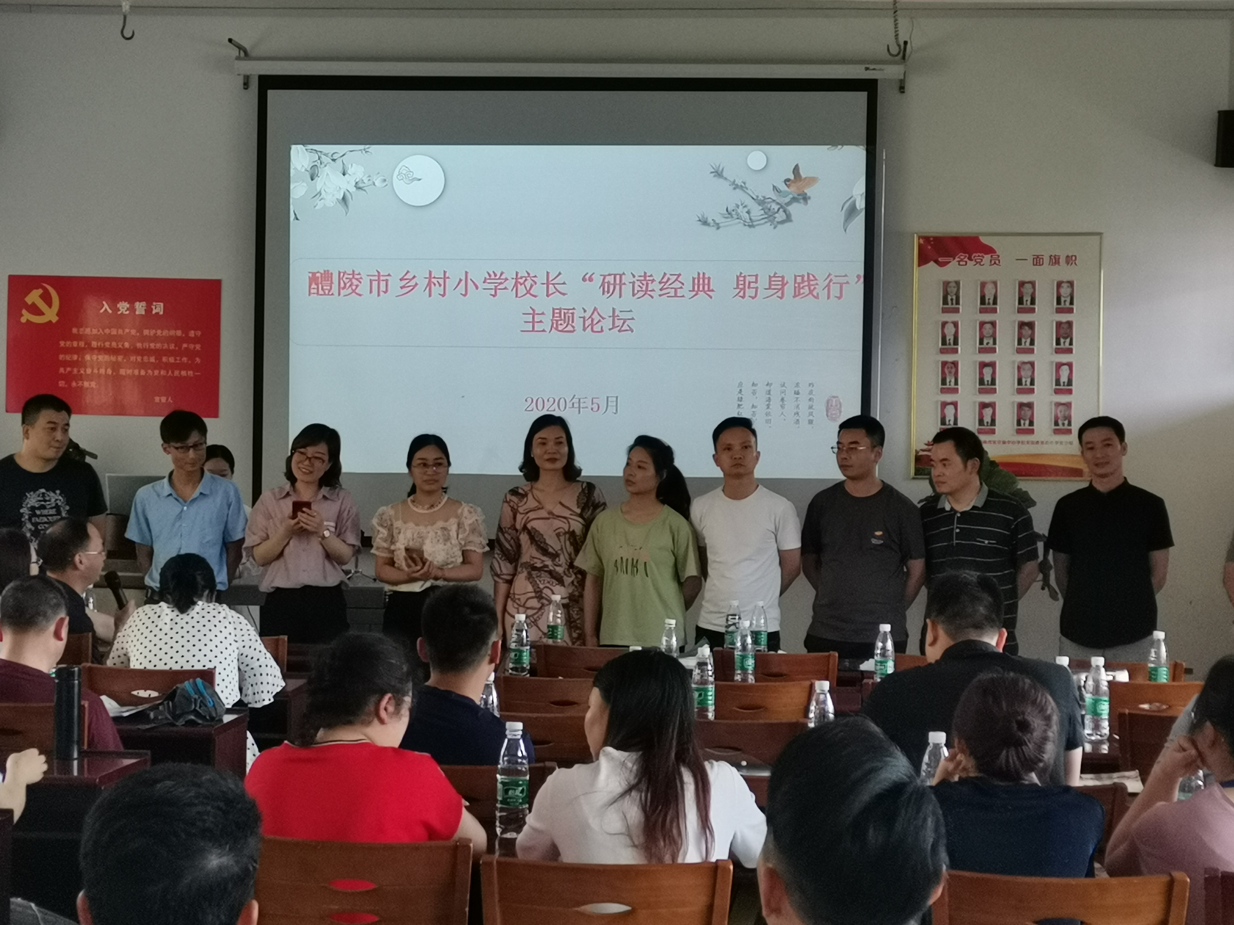 这是5月23日在绿荫环绕的官庄镇长连中心小学开展的醴陵市乡村小学校长"研讨经典 躬身践行"主题论坛上,一组的学员们即兴表演的"三句半",赢得了在场所有人的热烈掌声。