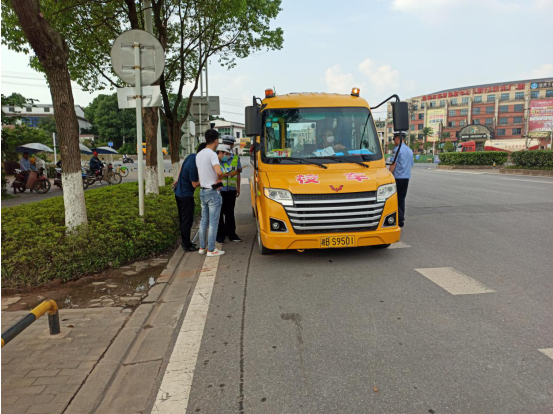联合执法检查组,分别对茶马线、锡兴路、华强路、学林路过往校车进行安全执法检查。交警重点对校车超载、超速、行驶线路、车辆行驶证、驾驶证、校车标牌、灭火器等进行了执法督查登记;教育部门对乘车幼儿登记册、随车照管人员逃生门应用、乘车幼儿扣安全带、医药箱医用药物、灭火器等进行了检查,全力保障学生的出行交通安全。