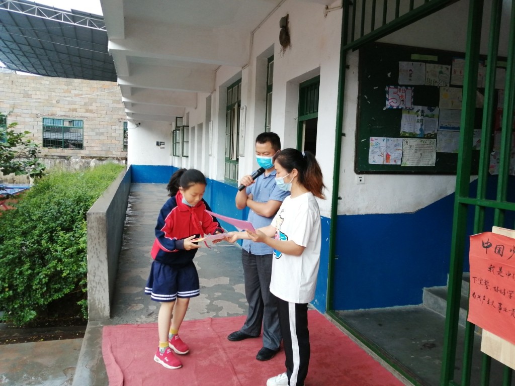 首先是由校长和政教主任为“庆祝六一”手抄报获奖学生颁奖。