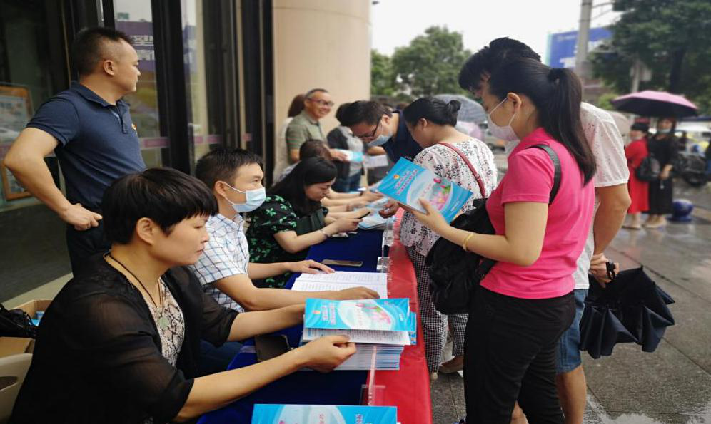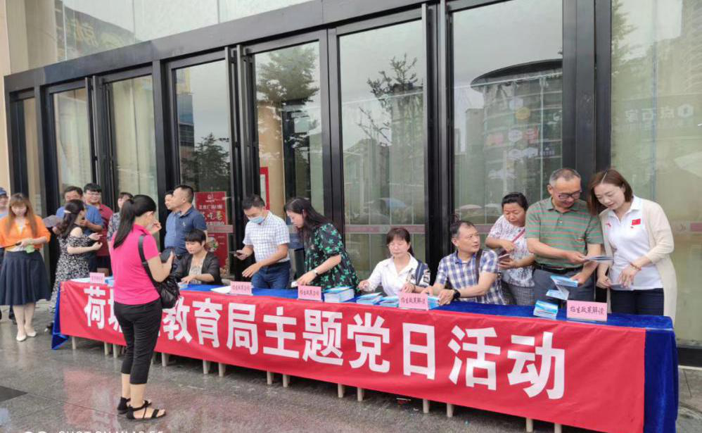6月5日,荷塘区教育局机关支部、教研支部在局党委副书记、副局长刘美贞带领下,在银泰财富广场摆起了长长的“摊子”,开展“为民服务,招生入学政策现场解读”主题党日活动。