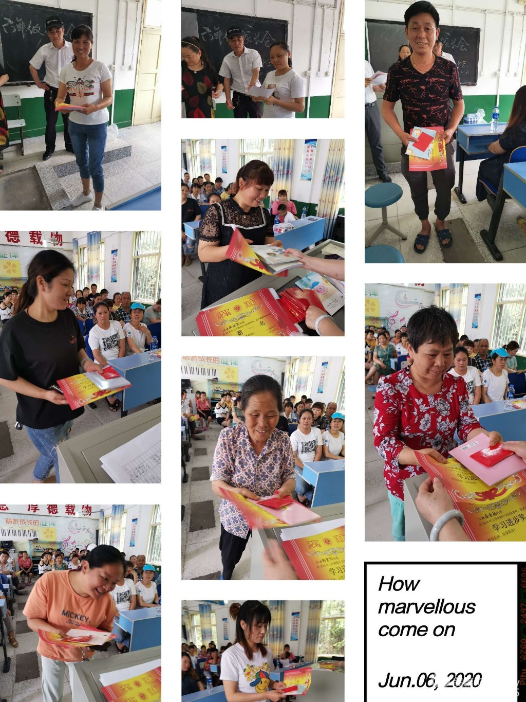 何回来校长公布了全科优秀奖,学习积极分子,学习进步奖,单科第一名的获奖学生名单,家长们乐呵呵的代表获奖学生登台领状、奖金和奖品,纷纷鞠躬感谢老师们的辛勤付出。班主任张福莲老师和两位校长一同颁奖。表扬了进步较大的同学并对这些同学的家长表示感谢,希望这些同学戒骄戒躁,再创佳绩。对于下降较大的同学也提出了建议,希望家长陪同监督。