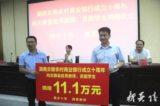 作为炎陵县金融机构的主力军和连续多年的全县第一纳税大户,炎陵农商行始终积极践行社会责任,热心支持公益事业,在前不久刚捐赠50万元抗疫资金的基础上,再度捐赠11.1万元奖教助学,帮助疫情下的优秀贫困学子摆脱困境,集中精力投入学习;同时鼓励更多优秀教师尽职尽责、因材施教,不断探索创新教学方法,致力提升炎陵整体教育教学水平,为革命老区发展培养更多人才。