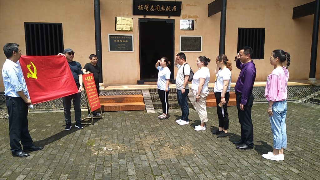 上午10:00,渌口区机关幼儿园全体党员教师在杨得志故居前重温入党誓词。"我志愿加入中国共产党........;",面对鲜红的党旗,高举右拳,字字铿锵。一句句铿锵有力的入党宣誓,响彻在将军故里。