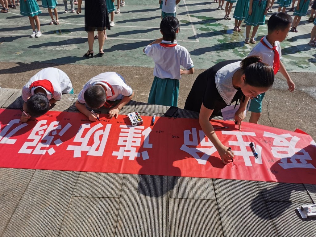 首先,围绕主题,学校开展了国旗下专题教育和签字仪式,德育处通过相关事列为同学们讲述了私自下河游水的各种危害,然后组织全体师生进行了防溺水的知识普及,一起在国旗下庄严宣誓,齐唱防溺水歌,并由老师带头签名——珍爱生命 谨防溺水 远离危险 平安成长。