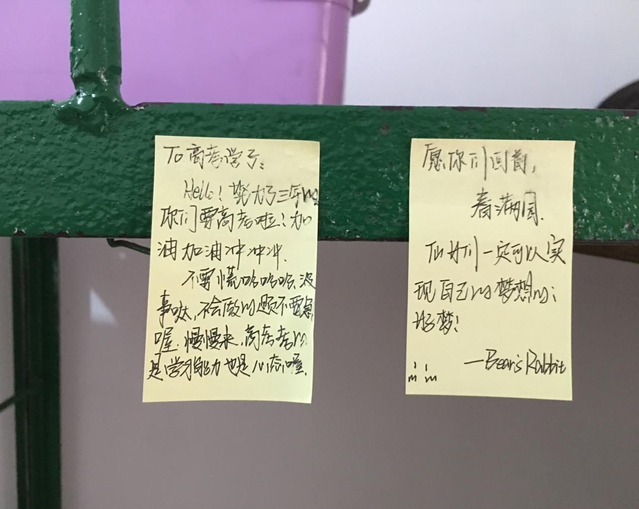你安心考试,我护你安全,身后许愿墙上密密麻麻的小字条,是你们立下的人生桅杆