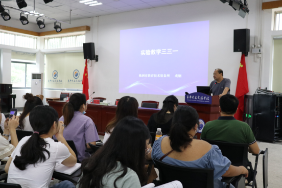 成钢对该区的教育事业投入给予了高度肯定,并以“实验教学三三一”为主题做了专题培训。他详细解读了《教育部关于加强和改进中小学实验教学的意见》《教育部关于发布<初中物理教学装备配置标准〉等6个学科配置标准的通知》《湖南省中小学实验室管理办法(试行)》等3个重要指导文件,强调要组织好省中小学实验教学质量抽查、市学生实验操作比赛、市初中学业水平考试理化生实验操作技能考查等3项活动,抓好危险化学药品常规管理。王锋针对长郡云龙、云田中学二期、云龙香江等学校的大批量实验室及功能室的建设,重点讲解了中小学实验室的仪器、安全、常规、账目、使用等管理工作。