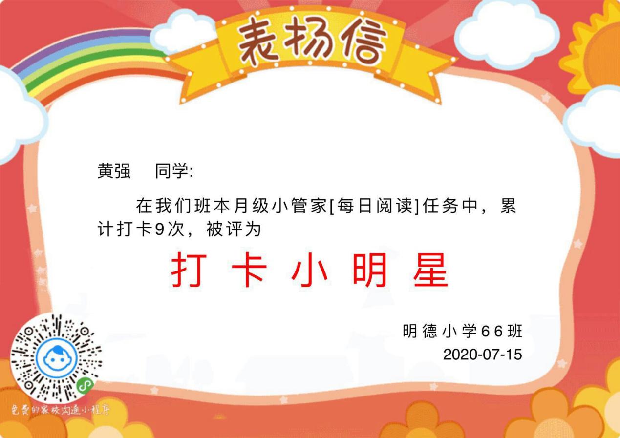 暑假阅读活动中,为了督促孩子能坚持阅读,老师们利用班级小管家或优化大师适时对学生进行阅读打卡提醒,并指导孩子做好阅读笔记。