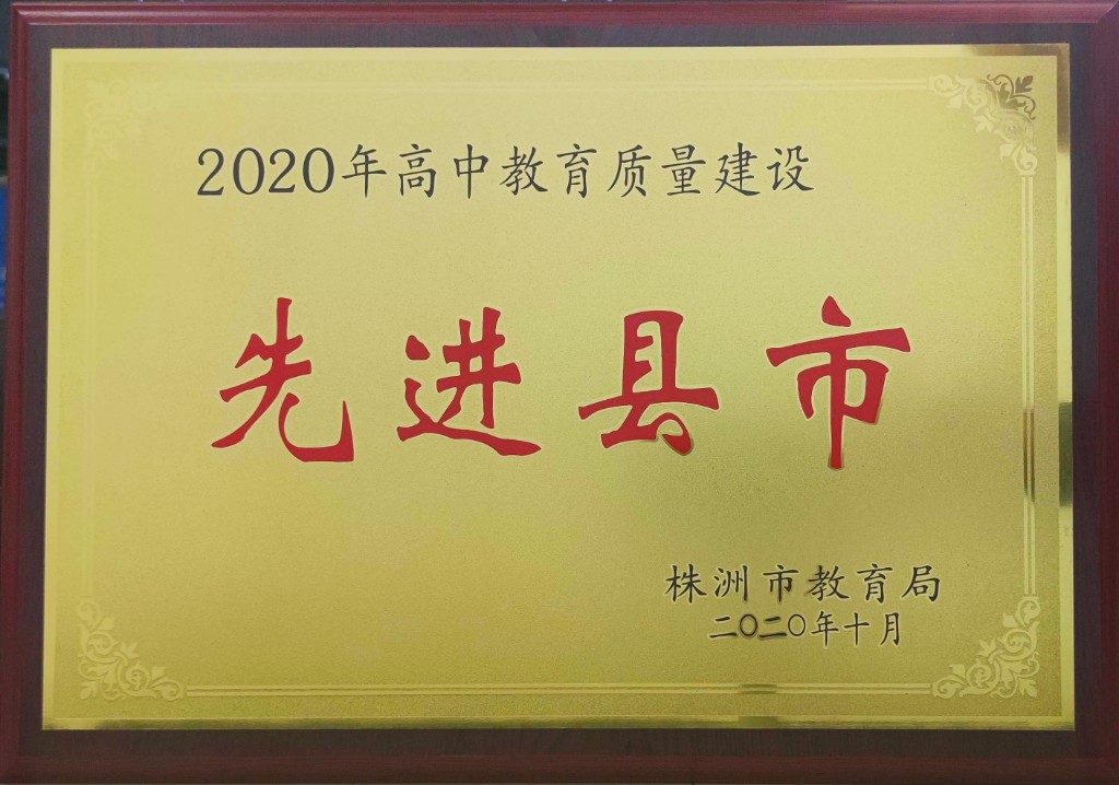 11月4日,株洲市普通高中教育质量建设会议在茶陵县召开,醴陵市荣获“2020年株洲市高中教育质量建设先进县市”(高考类)和“2020年株洲市高中学业水平考试先进县市”(学考类)两块奖牌。这也是株洲地区唯一同时获得高考、学考两块奖牌的县市。至此,醴陵市已连续八年荣获“株洲市高中教育质量建设先进县市”殊荣。